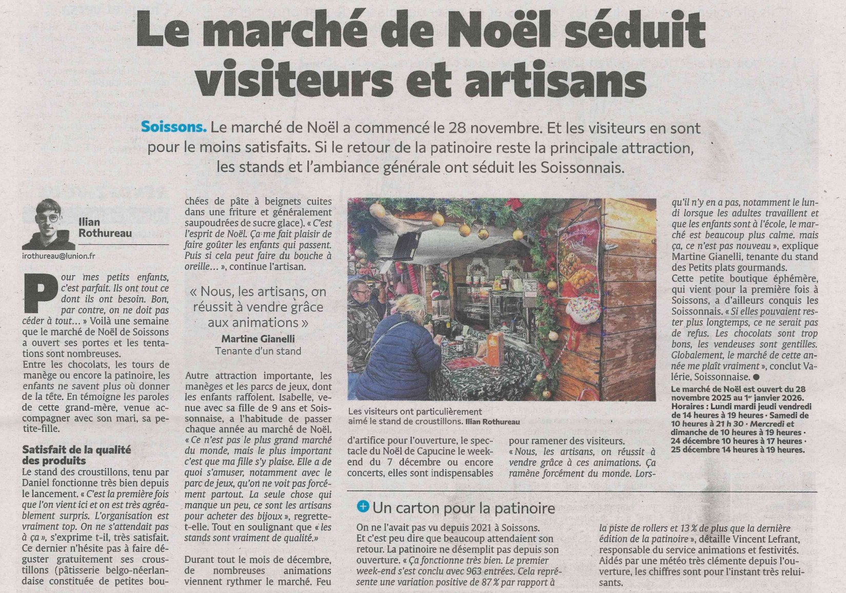 5 décembre 2025 L_Union-051225 Par vincentlefrant Navigation de l’article Article précédentPrécédent Le marché de Noël séduit visiteurs et artisans
